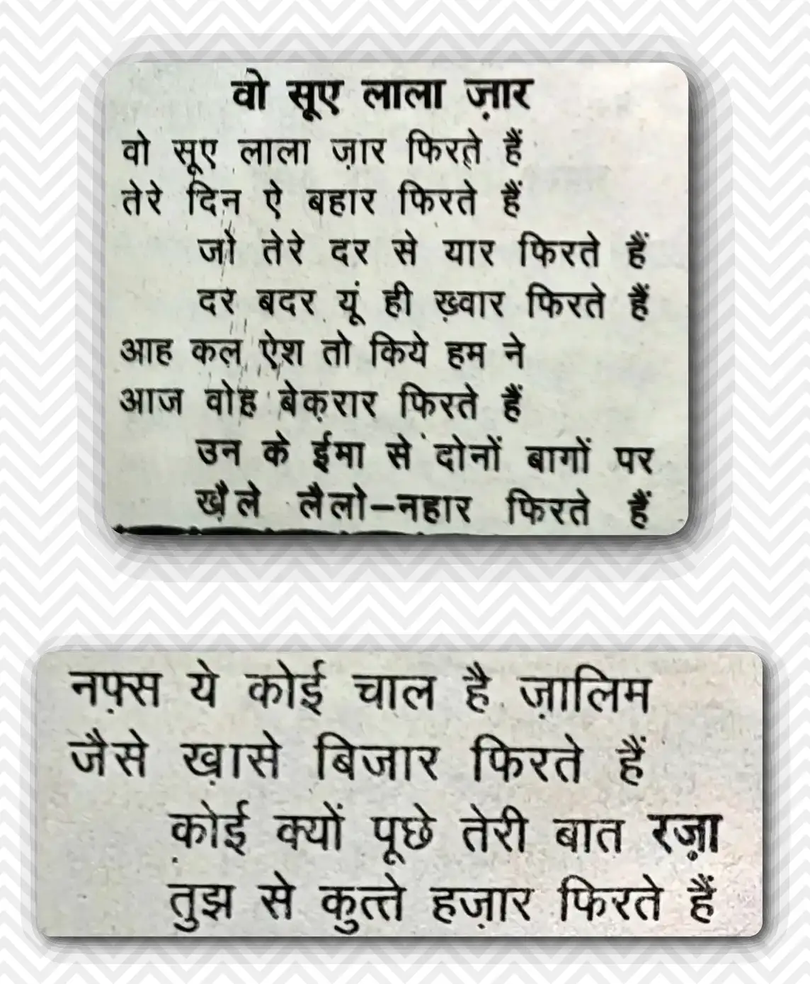 Ala Hazrat naat, Woh Sue Lalazar Phirte hain, lyrics in Hindi, with images. May Ala Hazrat رضي الله عنه forgive us if we made any mistake while writing or creating this page, and bless us all. أمين